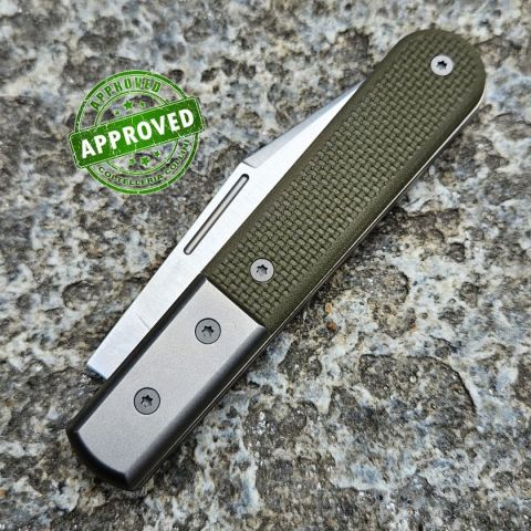 COLTELLO RITIRATO DA COLLEZIONE PRIVATA* Provenienza: Ritirato da un privato, precedentemente acquistato* Condizioni: Pari al nuovo* Reperibile in commercio: Fuori produzione* Affilatura: Di fabbrica* Segni su lama: Nessuno* Segni su impugnatura: Nessuno* Scatola: Presente* Fodero: /* Manuali, Certificati e Garanzie: /* Controllato e Certificato dal nostro laboratorio interno La serie lionSTEEL CollectorKnives dei coltelli Barlow ha debuttato nel 2017 con un successo esplosivo: La prima serie è stata quella del Roundhead dotato di lama spear e definito il Barlow europeo. Si tratta di una rivisitazione moderna del coltello tradizionale Barlow con alcune modifiche. La lama è in acciaio inossidabile sinterizzato M390, le cartelle e le mostrine sono in titanio con gli spigoli arrotondati, è dotato di un perno ferma lama e di viti torx. Destinazione d'uso: Gentleman/EDCTipo di produzione: IndustrialePaese di produzione: ItaliaLama: In acciaio inox M390 59/60HRCTra