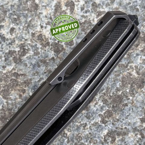 COLTELLO RITIRATO DA COLLEZIONE PRIVATA* Provenienza: Ritirato da un privato, precedentemente acquistato* Condizioni: Globalmente in ottime condizioni* Reperibile in commercio: Ancora a catalogo* Affilatura: Di fabbrica* Segni su lama: Nessuno* Segni su impugnatura: Nessuno* Scatola: Parzialmente presente (non completa, ma accessori presenti)* Fodero: /* Manuali, Certificati e Garanzie: /* Controllato e Certificato dal nostro laboratorio interno Destinazione d'uso: Sportivo / EDC Tipo di produzione: IndustrialePaese di produzione: ItaliaLama: In acciaio inox M390 59/60HRC Trattamento lama: PVD StonewashedManicatura: Titanio "Old Black"Lunghezza lama: 83mm.Spessore lama: 4mm.Lunghezza totale: 201mm.Peso: 118g.Chiusura: Frame Lock Clip: amovibile e reversibile, in titanioConfezione: Parzialmente presente - non completa, ma accessori presentiNote: Coltello precedentemente acquistato, proveniente da collezione privata - Sistema di apertura Carson Flipper su cuscinetti a sfera
