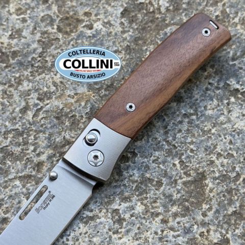NiNi è il primo coltello lionSTEEL dotato di chiusura Crossbar: un gentleman pocket tool che unisce eleganza e funzionalità quotidiana. Raffinato, affidabile e costruito con la consueta attenzione ai dettagli. La lama in acciaio M390 con finitura satinata è dotata di perni del pollice rimovibili, che consentono all’utilizzatore di scegliere se aprire il coltello tramite i perni o utilizzare la scanalatura per l’unghia. Il meccanismo Crossbar assicura un’apertura e un utilizzo sicuri in ogni situazione: è costituito da due piastre parallele che si muovono simultaneamente, mantenendo sempre coperto il foro per impedire l’ingresso di sporco nella fessura. Il manico, dalle linee eleganti ed ergonomiche, offre una presa confortevole e un controllo preciso. È disponibile in due versioni: con mostrina in titanio sabbiato oppure senza mostrina, con guancette più lunghe che coprono interamente i liner in acciaio inox lucidato. La clip reversibile può essere fissata al distanziale