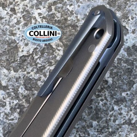 In occasione del decimo anniversario del modello T.R.E., vincitore del premio Overall Knife of the Year al Blade Show 2015, è pronto il nuovo folder EDC con molteplici opzioni di apertura: è il momento del Q4TTRO. Questo coltello leggero con blocco frame-lock presenta una lama in acciaio CPM-MagnaCut satinato, dotata del sistema “ReF” (Removable Flipper) e cuscinetti in ceramica per un'azione fluida e rapida. Il frame e la clip SOLID sono realizzati in titanio, mentre la piastra del manico è in FatCarbon. L'intero manico è progettato per una presa sicura e confortevole ed il distanziale in titanio si abbina alla clip SOLID. Intorno all'area del perno sono disponibili quattro opzioni di apertura manuale tra cui scegliere: linguetta di apertura posteriore (back flipper), flipper anteriore (front flipper), incisione per unghia (nail nick) oppure la classica apertura "a due mani". Destinazione d'uso: Sportivo / Tattico Tipo di produzione: IndustrialePaese di produzione: ItaliaLama: