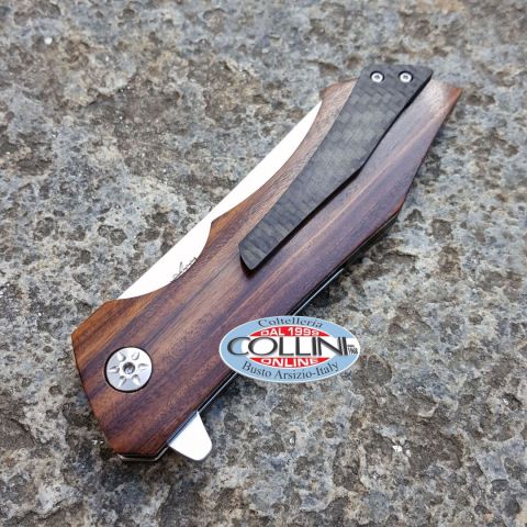 Destinazione d'uso: sportivo/collezione Tipo di produzione: industrialePaese di produzione: ItaliaLama: in acciaio inox N690CoTrattamento superficiale: satinaturaImpugnatura: legno di Pao SantoLunghezza lama: 95mm.Spessore lama: 3.5mm.Lunghezza chiuso: 130mm.Lunghezza totale: 210mm.Spessore da chiuso: 14mm.Peso: 158g.Chiusura: Liner LockClip: in Fibra di carbonioFodero: in NylonNote: Apertura tramite sistema Carson flipper - Movimento di apertura su cuscinetti a sfera - Design by Attilio "Atti" Morotti