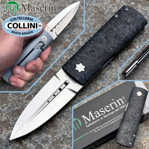 Destinazione d'uso: da collezione / sportivoTipo di produzione: IndustrialePaese di produzione: ItaliaLama: In acciaio Elmax a 61HRCFinitura lama: satinaturaManicatura: In titanio anodizzato e Fat Carbon con riflessi bluLunghezza lama: 80mm.Spessore lama: 3.4mm.Lunghezza totale: 175mm.Peso: 92g.Chiusura: Frame LockClip: assenteFodero: tasca in pelleConfezione: scatola in cartone con loghi MaserinNote: Design by Attilio Morotti