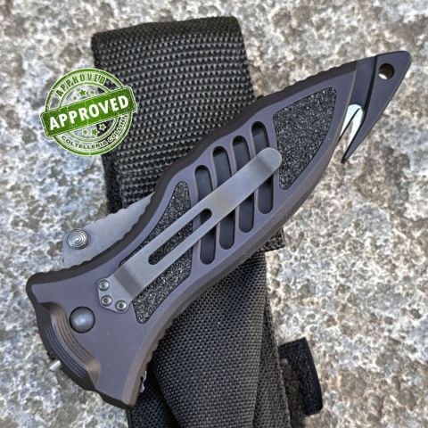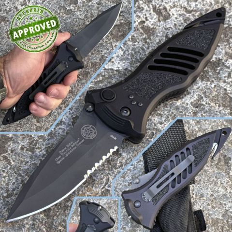 COLTELLO RITIRATO DA COLLEZIONE PRIVATA* Provenienza: Ritirato da un privato, precedentemente acquistato* Condizioni: Globalmente in ottime condizioni* Reperibile in commercio: Fuori produzione* Affilatura: Di fabbrica* Segni su lama: Nessuno (le macchie visibili in foto sono di olio sulla lama)* Segni su impugnatura: Nessuno* Scatola: Assente* Fodero: Presente, in Nylon* Manuali, Certificati e Garanzie: Assenti* Controllato e Certificato dal nostro laboratorio interno Il MARK I è un innovativo coltello tattico/militare, disegnato da Duane Dieter, prodotto alla fine degli anni '90 e diventato fin da subito un'icona nel panorama della coltelleria. Master of Defense, eclettico marchio americano ormai non più in attività e rilevato successivamente da Blackhawk! Blades, produceva diversi coltelli chiudibili e fissi di tipologia tattica e militare, tutti realizzati in collaborazione con noti Knifemakers quali Elishewitz, Janick, Keating, Ayoob, Watson e Casillas. Destinazione d'uso: Tattico