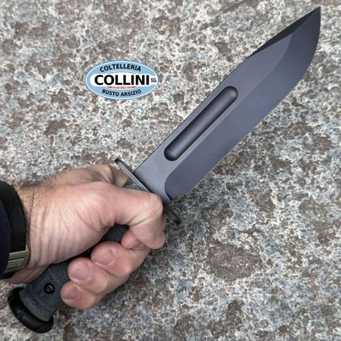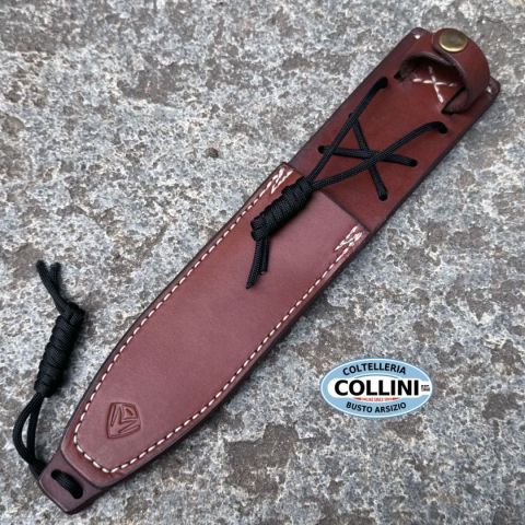 Il modello Fighter USMC è la nostra versione moderna e migliorata del classico coltello multiuso reso famoso dai Marines degli Stati Uniti. Questa lama fissa ha uno spessore di 6.5mm ed è realizzata in acciaio inox sinterizzato CPM-S35VN con trattamento Black DLC, misura quasi 30cm. di lunghezza totale, ha guancette in G-10 con superficie lavorata tridimensionalmente, una guardia in Titanio a due pezzi con trattamento DLC e pomolo in Titanio ricavato dal pieno con trattamento DLC. Questo esclusivo design full tang presenta tutti i vantaggi di una classica costruzione “slide-over” senza compromessi in termini di resistenza, come del resto ci si aspetterebbe da un Medford! Con fodero in pelle marrone realizzato artigianalmente, è un vero coltello da combattimento del 21° secolo. Destinazione d'uso: Tattico/CollezioneTipo di produzione: MidTechPaese di Produzione: USALama: Full tang, in acciaio CPM-S35VNFinitura Lama: Black DLCManicatura: Guardia e Pomolo in Titanio e guan