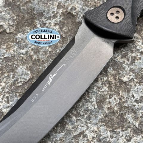 I coltelli Microtech Socom prendono il nome dal Comando delle operazioni speciali degli Stati Uniti, abbreviato in Socom; un comando operativo facente capo al Dipartimento della Difesa per le operazioni speciali degli Stati Uniti. Sotto la sua giurisdizione si trovano alcune unità molto famose, come i Navy SEALs, gli Air Force PJs, gli Army Rangers e altre ancora. Un coltello che prende in prestito un nome del genere deve fare sul serio, e la serie Microtech Socom lo fa! Grazie a materiali di alta qualità in grado di resistere a tutti i rigori del campo di battaglia. Coltelli costruiti per durare. La linea Microtech Signature Series è pensata per i clienti che cercano un'opzione più esclusiva rispetto ai già ottimi modelli di serie. A seconda del modello si distinguono per l'utilizzo di materiali e finiture di prima qualità: come ad es. la fibra di carbonio, il rame, il Damasco e il DLC. Destinazione d'uso: Tattico / SportivoTipo di produzione: MidtechPaese di produzione: USALama: In a