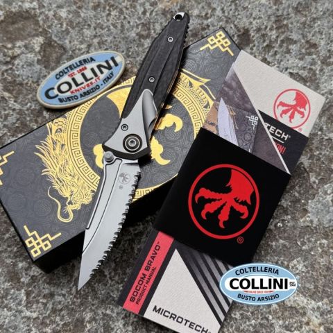 Progettato da Microtech e prodotto da Rike Knife, il Socom Bravo Mini è un coltello collaborativo che ricalca il modello del Socom classico. Questo compatto coltello manuale è un eccellente coltello tattico per impieghi gravosi. Presenta un manico in titanio 6Al4V rinforzato con guancette in fibra di carbonio. Il foro per il cordino e la clip da tasca consentono un trasporto funzionale e l'ergonomia è tra le migliori del settore. Destinazione d'uso: Tattico / MilitareTipo di produzione: IndustrialePaese di produzione: ChinaLama: In acciaio inox M390 60-61HRCFinitura lama: Bead BlastManicatura: Titanio 6Al4V e Fibra di CarbonioLunghezza lama: 87mm.Spessore lama: 3.5mm.Lunghezza chiuso: 110mm.Lunghezza totale: 196mm.Spessore da chiuso: 14mm.Peso: 95g.Chiusura: Sub Frame LockClip: in titanio, amovibile (tip up)Confezione: scatola di cartone con loghi Microtech Note: Linea produttiva asiatica di alta qualità che coniuga i design Microtech ai materiali più moderni