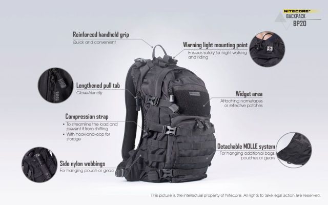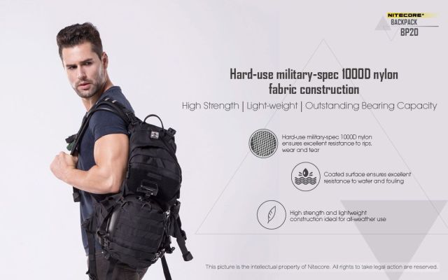 Zaino tattico in Cordura, leggera e resistente, pensato per uso escursionistico, tattico ed urbano.Caratteristiche e Materiali: - Cordura Nylon a 1000 denari resistente all'acqua e alle abrasioni con parti in velluto sintetico- Trattamento esterno per tessuti che assicura resistenza allo sporco e facilita la manutenzione- Pensato per un utilizzo intenso ed escursionistico- Tasche a scomparti per permettere l'alloggiamento di differenti utensili- Schienale e tracolle imbottite e ventilate- Maniglia rinforzata- Punti di ancoraggio per luci LED di segnalazione (Ad esempio Nitecore NU05)- Tira Zip rinforzati e di lunghe dimensioni, comodi da usare anche con guanti- Ampia zona in velcro per ancorare patch ed oggetti vari- Cinghia centrale di compressione per ancorare oggetti e compattare il carico- Parte anteriore compatibile MOLLE per espandere e modulare lo zaino- Bandelle in nylon laterali per agganciare oggetti e buffetteria addizionale- Tasca int