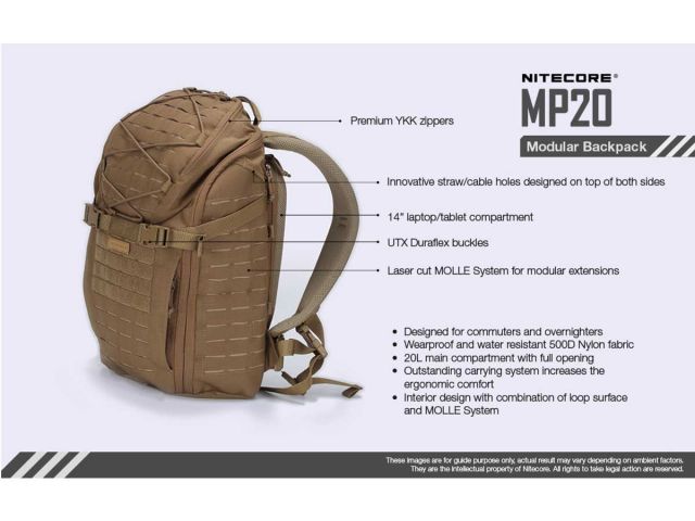 Nell'ultimo anno Nitecore ha potenziato lo sviluppo e la produzuione di prodotti rivolti al settore militare / forze dell'ordine, appoggiandosi a professionisti del settore e creando un team dedicato solo per servire questo mercato. Nitecore ha lanciato i primi prototipi nel mese di aprile del 2019 e quasi un anno dopo è finalmente arrivata sul mercato con 3 diverse dimensioni di zaini tattici, 20L, 25L e 30L. Grazie all'innovativo sistema MOLLE interno ed esterno tagliato a laser, gli zaini Nitecore permettono una personalizzazione illimitata e ne permettono il funzionamento con qualsiasi tasca a MOLLE oggi sul mercato. Le cinghie tagliate al laser riducono inoltre anche il peso dello zaino, migliorandone il confort e la trasportabilità. Modello: MP20Tipo: zaino modulareCapacità: 20LDimensioni: 45 x 26 x 15 cmVano ausiliario: adatto per laptop / tablet da 14 "Peso: 1,3 kgColori disponibili: nero Caratteristiche tecniche - Cerniere YKK premium- Innovativi for