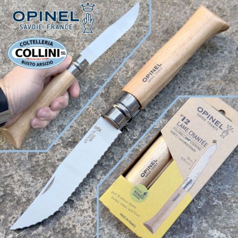 Dalla famosa azienda francese Opinel, un pieghevole ormai diventato un classico senza tempo. Lama in acciaio inox Sandvik (tenore di carbonio 0,4%).Manico in legno di faggioEsclusivo sistema Virobloc per bloccare la lama in chiusura e apertura.N.12- LAMA SEGHETTATA 12cm , lunghezza totale 28cm- peso: 115 gr.