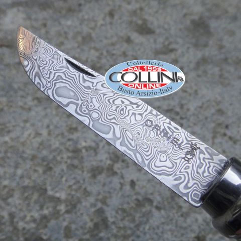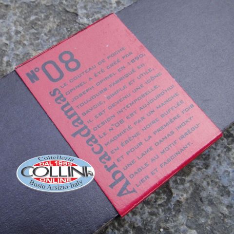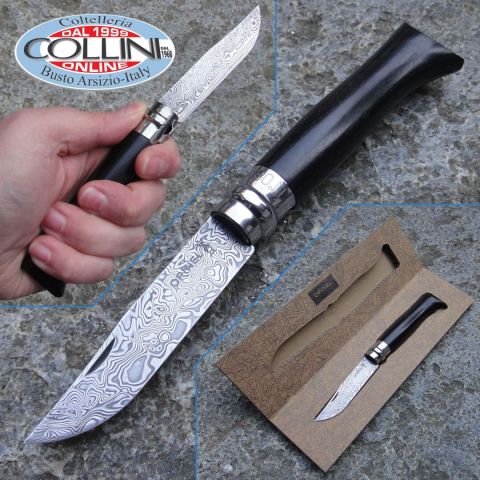 Per la prima volta dal 1890, Opinel è fiera di proporre un ricercatissimo coltello tascabile con lama in damasco inox irregolare ed impugnatura in pregiato legno di ebano.Tipo di produzione: semi-artigianaleProduzione Lama: FranciaLama: damasco inoxManicatura: legno di ebanoLunghezza lama: 82mm.Spessore della lama: 2mm.Lunghezza chiuso: 111mm.Spessore da chiuso: 22mm.Lunghezza totale: 192mm.Peso: 56g.Chiusura: viro block
