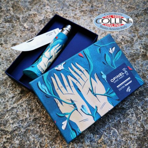 Per la sua collezione Edizione 2019 «Amour», Opinel invita 3 artisti a decorare il manico del coltello iconico N°08 proponendo tre differenti soggetti, ognuno in tiratura limitata di 8000 pezzi. Lama numerata in acciaio inossidabile Sandvik 12C27 modificato; manico in legno di bosso con decorazione applicata tramite sublimazione, cofanetto in cartone con coperchio personalizzato. Andrea Wan, nato a Hong Kong, cresciuto a Vancouver e che vive a Berlino, ha lavorato sul simbolismo delle mani per descrivere un amore generoso che cresce grazie al dono di sé e alla condivisione. Destinazione d'uso: Sportivo / Collezione Tipo di produzione: Industriale Paese di produzione: Francia Lama: in acciaio inox 12C27 Trattamento Lama: satinata Manicatura: Legno di bosso decorato Lunghezza lama: 80mm. Spessore lama: 1.5mm. Lunghezza chiuso: 107mm. Lunghezza totale: 190mm.Peso: 42g. Chiusura: Viro-BlockConfezione: Scatola di cartone con loghi Opinel - edizione a tiratu