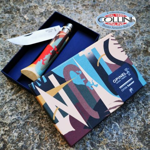 Per la sua collezione Edizione 2019 «Amour», Opinel invita 3 artisti a decorare il manico del coltello iconico N°08 proponendo tre differenti soggetti, ognuno in tiratura limitata di 8000 pezzi. Lama numerata in acciaio inossidabile Sandvik 12C27 modificato; manico in legno di bosso con decorazione applicata tramite sublimazione, cofanetto in cartone con coperchio personalizzato. Franck Pellegrino, nato a Lione e residente a Parigi, rappresenta l'amore celebrando la coppia "Us" e la sua intimità attraverso un gioco di intrecci e fusione di forme geometriche. Destinazione d'uso: Sportivo / Collezione Tipo di produzione: Industriale Paese di produzione: Francia Lama: in acciaio inox 12C27 Trattamento Lama: satinata Manicatura: Legno di bosso decorato Lunghezza lama: 80mm. Spessore lama: 1.5mm. Lunghezza chiuso: 107mm. Lunghezza totale: 190mm.Peso: 42g. Chiusura: Viro-BlockConfezione: Scatola di cartone con loghi Opinel - edizione a tiratura limitata in 8000 p