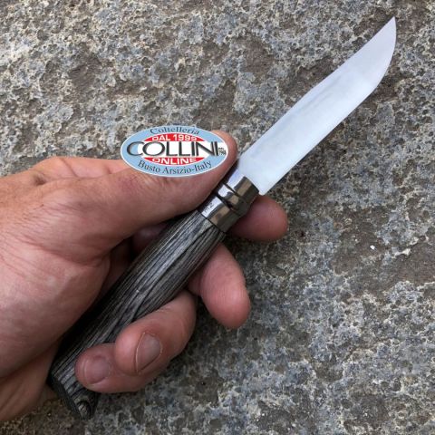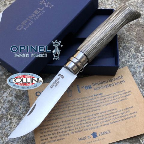 Destinazione d'uso: Sportivo / Collezione Tipo di produzione: IndustrialeProduzione Lama: FranciaLama: in acciaio inox Sandvik 12C27Trattamento Lama: SatinataManicatura: Legno di betulla lamellato in colore grigio argentoLunghezza lama: 82mm.Spessore lama: 2mm.Lunghezza chiuso: 108mm.Lunghezza totale: 190mm.Spessore da chiuso: 20mm.Bilanciatura: -Peso: 44g.Chiusura: ViroblocClip: -Fodero: -Confezione: Scatola di cartone con loghi OpinelNote: