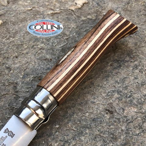 Destinazione d'uso: Sportivo / Collezione Tipo di produzione: Industriale Produzione Lama: Francia Lama: in acciaio inox Sandvik 12C27 Trattamento Lama: Satinata Manicatura: Legno di betulla lamellato in colore marrone Lunghezza lama: 82mm. Spessore lama: 2mm. Lunghezza chiuso: 108mm. Lunghezza totale: 190mm. Spessore da chiuso: 20mm. Bilanciatura: - Peso: 44g. Chiusura: Virobloc Clip: - Fodero: - Confezione: Scatola di cartone con loghi Opinel Note: