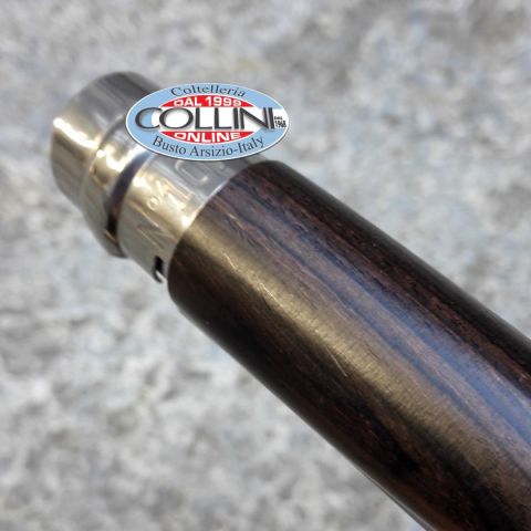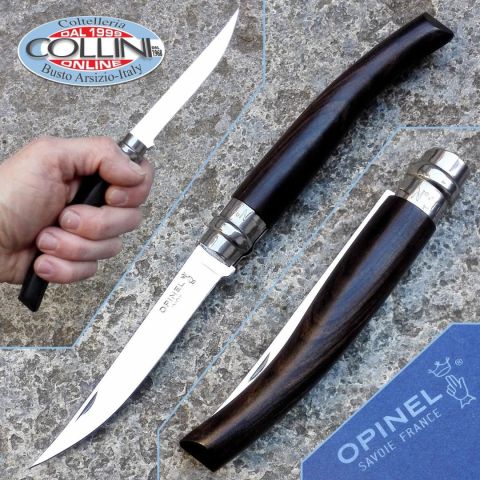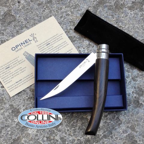 Destinazione d'uso: Sportivo / Collezione Tipo di produzione: Industriale Produzione Lama: Francia Lama: in acciaio inox Sandvik 12C27 Trattamento Lama: Satinata Manicatura: Ebano del Mozambico Lunghezza lama: 102mm. Spessore lama: 1.2mm. Lunghezza chiuso: 122mm. Lunghezza totale: 225mm. Spessore da chiuso: 18mm. Bilanciatura: - Peso: 52g. Chiusura: Virobloc Clip: - Fodero: - Confezione: Scatola di cartone con loghi Opinel Note: Edizione limitata, non numerata