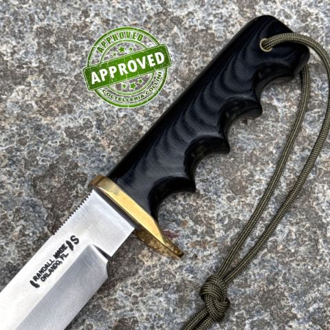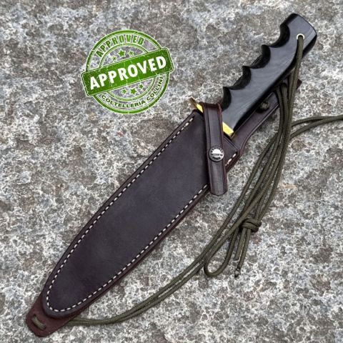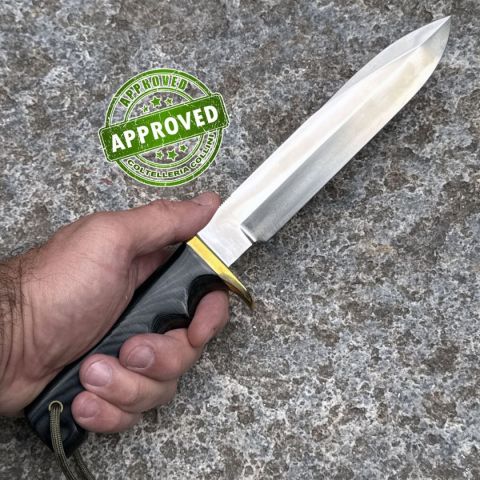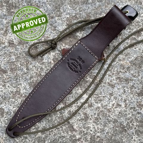 Il Modello 16 è stato progettato per soddisfare la richiesta di un coltello multiuso quasi indistruttibile, compreso un uso intensivo in acqua salata (si raccomanda comunque un'accurata pulizia e manutenzione). In dotazione un fodero speciale impregnato di cera. Lama da 7″ (17.8cm) in acciaio inossidabile con spessore di 6.5mm. La parte superiore della lama è leggermente dentellata per consentire un agevole posizionamento del pollice. Impugnatura in Micarta nera. Codolo extra-pesante largo 7/8″ (2.2cm) che si estende attraverso un canale nel manico a cui è fissato saldamente con resina epossidica. COLTELLO RITIRATO DA COLLEZIONE PRIVATA* Tipologia: Precedentemente acquistato, prodotto nel 2023* Condizioni: Ottime condizioni, pari al nuovo* Affilatura: Originale* Segni su lama: Nessuno* Segni su impugnatura: Nessuno* Confezione: -* Fodero: originale, in cuoio, in ottime condizioni* Manuali, Certificati e Garanzie: -* Controllato e Certificato dal nostro laboratorio interno &n