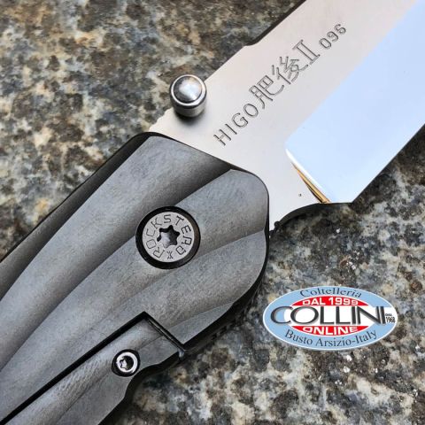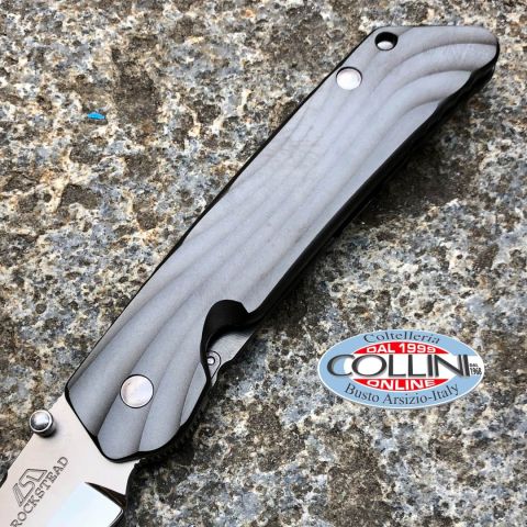 Con il marchio Rockstead, della Ishida Co. di Sakai, in Giappone, sono attualmente commercializzati i migliori coltelli industriali attualmente in produzione.Creati da Katsumi Kitano, che da oltre 20 anni produce coltelli di qualità tanto da esser stato insignito del massimo riconoscimento tra i coltellinai artigiani in Giappone, si dimostrano eccezionali sia in capacità di taglio, penetrazione e tenuta del filo sia a livello di innovazione per i materiali utilizzati e per le tecniche costruttive. Destinazione d'uso: Collezione / SportivoTipo di produzione: MidtechPaese di produzione: Sakai - JapanLama: in acciaio inox ZDP189 temprato a 66/67HRCTrattamento lama: lucidatua a specchioImpugnatura: titanioLunghezza lama: 90mm.Spessore lama: 3mm.Lunghezza chiuso: 120mm.Lunghezza totale: 216mm.Spessore da chiuso: 12.2mm.Peso: 136g.Apertura: tramite perno ambidestro Washers: in ottoneChiusura: FrameLock con battente in SKD11 a 61HRCClip: amovibile, in acciaio inox 420J2 con tratta