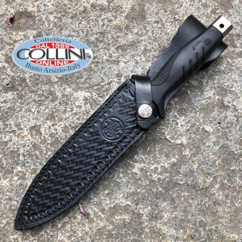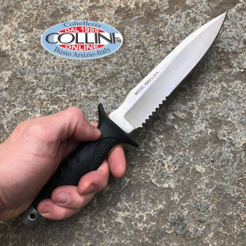 Destinazione d'uso: sportivoTipo di produzione: industrialeLama: full tang in acciaio inox 440Trattamento Lama: -Produzione Lama: UsaManicatura: krytonLunghezza lama: 160mm.Spessore della lama: 4mm.Lunghezza chiuso: -Lunghezza totale: 283mm.Bilanciatura: arretrata - 2cm. dal ramo di guardiaPeso: 166g.Chiusura: -Clip: -Fodero: CuoioNote: produzione fine anni 90"