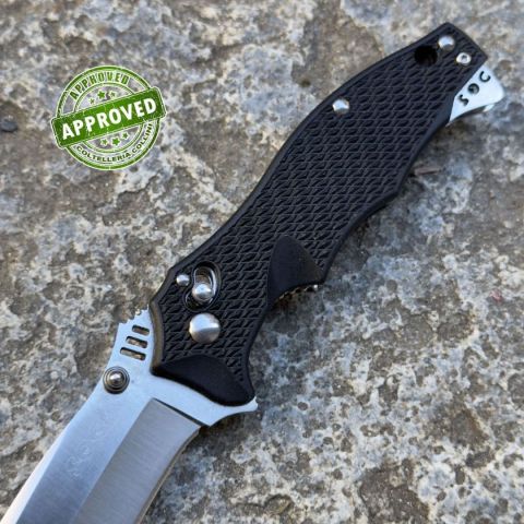 COLTELLO RITIRATO DA COLLEZIONE PRIVATA* Provenienza: Ritirato da un privato, precedentemente acquistato e oggi non più in produzione* Condizioni: Globalmente in ottime condizioni* Reperibile in commercio: NON reperibile in commercio* Affilatura: Originale* Segni su lama: Nessuno* Segni su impugnatura: Nessuno* Scatola: -* Fodero: -* Manuali, Certificati e Garanzie: -* Controllato e Certificato dal nostro laboratorio interno Il SOG Mini-Vulcan VL-02 è un coltello pieghevole di alta qualità progettato per soddisfare le esigenze degli appassionati di coltelli e degli utilizzatori più esigenti. Concepito per unire robustezza, funzionalità e design raffinato, questo modello rappresenta la perfetta combinazione tra ingegneria avanzata e artigianato di precisione. La lama in acciaio VG-10, estremamente affilata e resistente alla corrosione, assicura prestazioni impeccabili sia in ambienti outdoor che nelle attività quotidiane. Il meccani