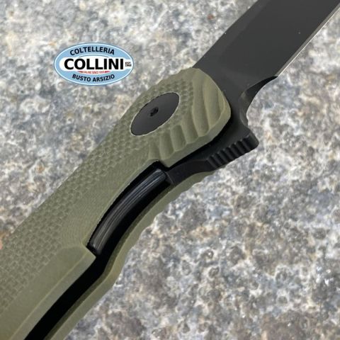 Il flipper POROS è stato progettato da Curtis Iovito come un flipper robusto e di grandi dimensioni. Le alte linee di molatura di questa lama, combinate con una punta affilata e penetrante, lo rendono un compagno affidabile per il porto quotidiano. La sua rapida azione flipper è assistita dai cuscinetti IKBS per quel "Snap" che stai cercando! Le sue distintive scallopature non sono solo belle da vedere, ma garantiscono anche una presa sicura. La clip da tasca profonda mantiene un profilo basso pur mantenendo la tua lama pronta all'uso quando necessario. La lama è in acciaio inossidabile 154CM con rivestimento in nitruro di titanio nero; l'hardware e il liner in SS hanno un rivestimento in polvere elettrodepositata nera. Destinazione d'uso: Sportivo Tipo di produzione: IndustrialePaese di produzione: TaiwanLama: in acciaio inox 154CM 58/60 HRCTrattamento lama: Black Titanium Nitride Coating Manicatura: OD Green G10Lunghezza lama: 89mm.Spessore lama: 4mm.Lunghezza chiuso: 97mmLunghe