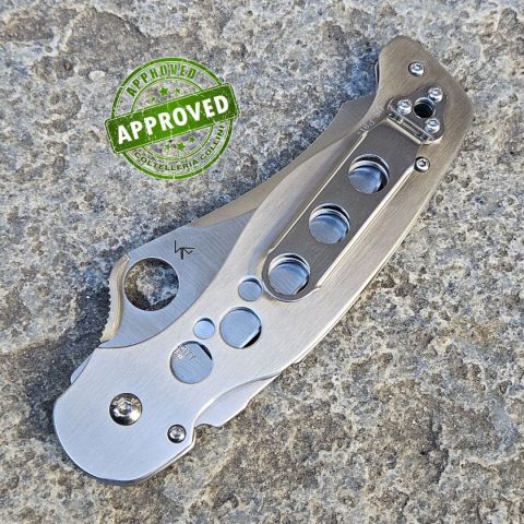 COLTELLO RITIRATO DA COLLEZIONE PRIVATA* Provenienza: Ritirato da un privato, precedentemente acquistato* Condizioni: Perfetto, Pari al nuovo, NOS (new old stock)* Reperibile in commercio: Modello del 2006, fuori produzione, primo coltello Spyderco ad adottare il "Compression Lock"* Affilatura: Di fabbrica, mai utilizzato* Segni su lama: Nessuno* Segni su impugnatura: Nessuno* Scatola: Presente ed in perfette condizioni* Fodero: -* Manuali, Certificati e Garanzie: -* Controllato e Certificato dal nostro laboratorio interno Il C70 A.T.R. (At The Ready) incarna l’essenza del folder tattico ad alte prestazioni. Premiato come “Knife of the Year 2003” da Knives Illustrated, questo modello rappresenta una vetrina delle soluzioni tecnologiche più avanzate sviluppate da Spyderco. Il manico, ricavato con estrema precisione da un blocco di acciaio inox satinato, è alleggerito da una serie di fori che ne riducono il peso e fungono da punti di riferimento tattile per cambiare presa rapidamente. Gl