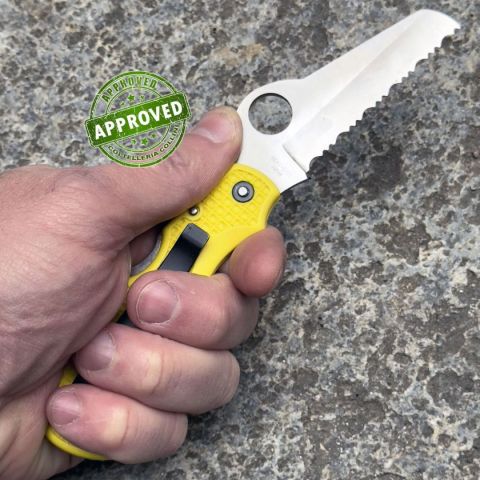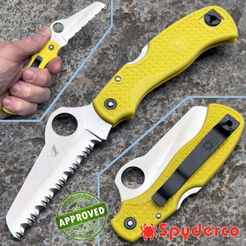 COLTELLO RITIRATO DA COLLEZIONE PRIVATA* Provenienza: Ritirato da un privato, precedentemente acquistato ed utilizzato 1° serie* Condizioni: Globalmente in ottime condizioni* Reperibile in commercio: in produzione * Affilatura: Ottima affilatura* Segni su lama: Piccoli segni* Segni su impugnatura: /* Scatola: /* Fodero: /* Manuali, Certificati e Garanzie: /* Controllato e Certificato dal nostro laboratorio interno Il Spyderco Saver Salt è un coltello pieghevole progettato specificamente per ambienti marini e situazioni di emergenza. Parte della rinomata serie Salt di Spyderco, questo coltello combina materiali resistenti alla corrosione con un design funzionale, rendendolo ideale per subacquei, marinai e soccorritori. La lama in acciaio H-1, noto per la sua eccezionale resistenza alla ruggine, presenta un profilo sheepfoot con punta arrotondata, riducendo il rischio di perforazioni accidentali durante il taglio in prossimità di sup