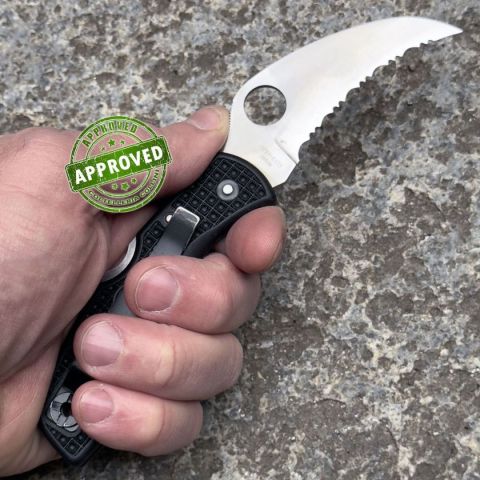 COLTELLO RITIRATO DA COLLEZIONE PRIVATA* Provenienza: Ritirato da un privato, precedentemente acquistato ed utilizzato* Condizioni: Globalmente in buone condizioni, mostra piccoli segni e graffi su lama e clip* Reperibile in commercio: Fuori produzione* Affilatura: Lama riaffilata e lucidata* Segni su lama: Piccoli segni di usura, soprattutto sul lato destro* Segni su impugnatura: Segni di usura sulla clip, con vernice parzialmente rimossa* Scatola: /* Fodero: /* Manuali, Certificati e Garanzie: /* Controllato e Certificato dal nostro laboratorio interno Il Spyderco Tasman Salt C106SBK è un coltello pieghevole progettato per affrontare le sfide più dure in ambienti marini e per attività legate all'acqua. Questa versione, caratterizzata dal codice prodotto C106SBK, è dotata di una lama Hawkbill in acciaio H-1, completamente resistente alla corrosione, perfetta per tagli di trazione e materiali difficili come corde e reti. Il manico