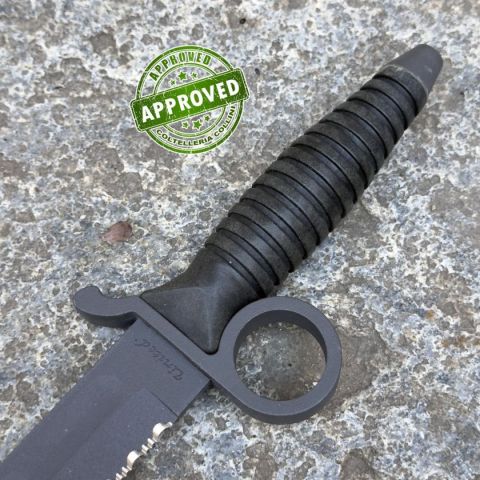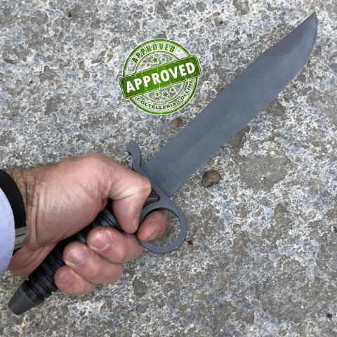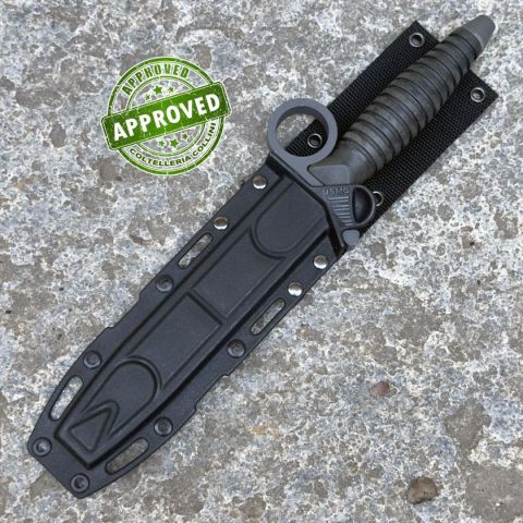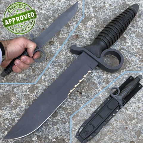 Una vera rarità per collezionisti! Presentiamo un coltello Bowie originale con lama da 17,8 cm prodotto da United Cutlery alla fine degli anni 90'. COLTELLO RITIRATO DA COLLEZIONE PRIVATA* Provenienza: Ritirato da un privato, precedentemente acquistato* Condizioni: In ottime condizioni* Reperibile in commercio: Fuori produzione* Affilatura: Di fabbrica* Segni su lama: NO* Segni su impugnatura: NO* Scatola: Presente* Fodero: Presente* Manuali, Certificati e Garanzie: -* Controllato e Certificato dal nostro laboratorio interno Destinazione d'uso: Sportivo / Collezione Tipo di produzione: IndustrialePaese di produzione: USALama: in acciaio carbonioso 1090Finitura lama: polveri epossidichManicatura: polimeroLunghezza lama: 170mm.Spessore lama: 4mm.Lunghezza totale: 175mm.Peso: 119g.Confezione: Scatola di cartone con loghi United e USMC 2025Note: 1996 La lama è marcata "United" sul ricasso sinistro e con il numero di modello di fabbrica "UC 977/ U.S.A." sul ricasso destro. Guard