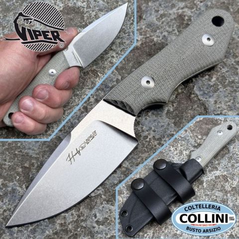 Il Viper Handy è un coltello fisso innovativo e compatto, progettato per offrire un'esperienza d'uso ottimale grazie all'impiego di tecnologie di produzione avanzate e materiali di alta qualità. Ideato dal maestro Fabrizio Silvestrelli, questo coltello si distingue per la sua leggerezza ed ergonomia, garantendo una maneggevolezza eccezionale e un utilizzo confortevole anche durante sessioni prolungate. Il Viper Handy, con la sua lama fissa in acciaio CPM MagnaCut, offre un'elevata resistenza e una durata eccezionale. La finitura stonewashed aggiunge un tocco di eleganza e praticità, riducendo la visibilità dei graffi durante l'uso. L'impugnatura in canvas micarta naturale, lavorata in 3D, si adatta perfettamente alla mano, garantendo una presa sicura e precisa. Il codolo del manico, assottigliato verso il retro, favorisce un bilanciamento ottimale del coltello, riducendo l'affaticamento durante l'utilizzo prolungato. Questo rende il Viper Handy ideale per attività outdoor e di caccia,