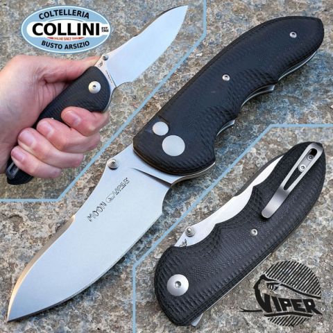 Progettato dal maestro Fabrizio Silvestrelli, Moon é il primo coltello di Viper ad adottare il blocco "button lock" temprato, un meccanismo di chiusura che si attiva tramite un pulsante posto sul manico. Questo tipo di blocco offre una chiusura sicura e affidabile per la lama. Per la lama è stato scelto di utilizzare un acciaio di ultima generazione come il MagnaCut: un acciaio ad alta resistenza, noto per la sua durezza e la capacità di ritenzione del filo. Grazie a queste proprietà, la lama è in grado di affrontare diverse attività senza problemi. Il manico ha un'impugnatura ergonomica e confortevole. La finitura in 3D dà al manico un aspetto unico e offre una presa sicura durante l'uso. L'impugnatura è progettata in modo preciso per adattarsi alla forma della mano, garantendo un controllo ottimale del coltello ed utilizza il nuovissimo composito UltreX, materiale perfetto per le impugnature in G-10 modificato.SureTouch è un nuovo e rivoluzionario processo in attesa