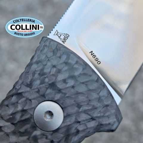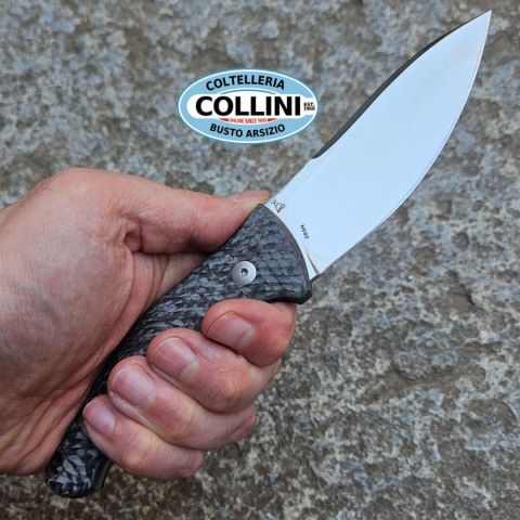 Il Nordlys è un coltello a lama fissa full tang con codolo parzialmente nascosto. Il manico, sottile ed ergonomico, è realizzato in fibra di carbonio, legno, suretouch o micarta e presenta una superficie texturizzata tridimensionalmente per una presa sicura e confortevole. Questo elegante strumento viene fornito con un fodero in vera pelle di alta qualità, che garantisce protezione e durata, rendendolo ideale per appassionati e collezionisti esigenti. Jens Ansø è un rinomato designer di coltelli danese. Dal 2001, crea coltelli unici combinando funzionalità e estetica. Ansø è noto per l'uso di materiali di alta qualità e design innovativi. Collabora con marchi prestigiosi e produce coltelli personalizzati, apprezzati da collezionisti e utilizzatori in tutto il mondo. Destinazione d'uso: Outdoor & Caccia Tipo di produzione: IndustrialePaese di produzione: ItaliaLama: Full Tang in acciaio inox N690CoFinitura lama: SatinaturaManicatura: Fibra di carbonioLunghezza lama: 97mm.Spessore la