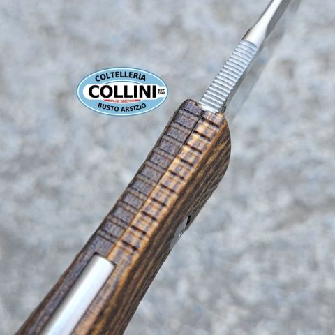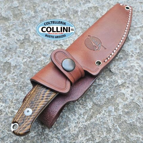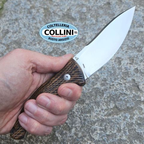 Il Nordlys è un coltello a lama fissa full tang con codolo parzialmente nascosto. Il manico, sottile ed ergonomico, è realizzato in fibra di carbonio, legno, suretouch o micarta e presenta una superficie texturizzata tridimensionalmente per una presa sicura e confortevole. Questo elegante strumento viene fornito con un fodero in vera pelle di alta qualità, che garantisce protezione e durata, rendendolo ideale per appassionati e collezionisti esigenti. Jens Ansø è un rinomato designer di coltelli danese. Dal 2001, crea coltelli unici combinando funzionalità e estetica. Ansø è noto per l'uso di materiali di alta qualità e design innovativi. Collabora con marchi prestigiosi e produce coltelli personalizzati, apprezzati da collezionisti e utilizzatori in tutto il mondo. Destinazione d'uso: Outdoor & Caccia Tipo di produzione: IndustrialePaese di produzione: ItaliaLama: Full Tang in acciaio inox N690CoFinitura lama: SatinaturaManicatura: Legno di BocoteLunghezza lama: 97mm.Spessore lama