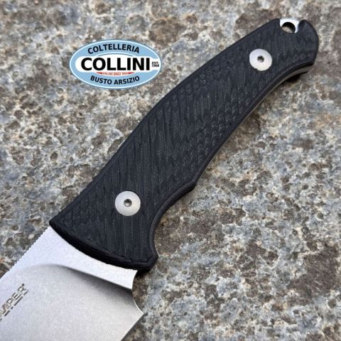 Il modello RANGER è un coltello fisso ideale per la cucina da campeggio grazie alla sua lama alta; leggero e maneggevole, presenta un'impugnatura sottile ed ergonomica, arricchita da una texture superficiale che garantisce una presa sicura in ogni situazione. Con una lama fissa in acciaio N690, il RANGER offre una combinazione impareggiabile di leggerezza e resistenza, che lo rende perfetto per le avventure outdoor più impegnative, dall'arrampicata alla preparazione dei pasti in campeggio. Viene fornito con un fodero in pelle. Il manico utilizza il nuovissimo composito UltreX, materiale perfetto per le impugnature in G-10 modificato. SureTouch è un nuovo e rivoluzionario processo in attesa di brevetto che combina strati di G-10 con la gomma. Ora è possibile avere la resistenza e la durata del G-10 con le proprietà di presa e antiscivolo della gomma, tutto in un unico materiale. La combinazione di G-10 e gomma offre uno dei vantaggi più rivoluzionari del mercato. Poiché il G10 vie