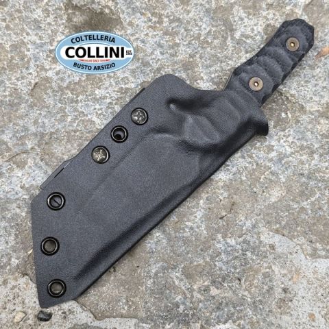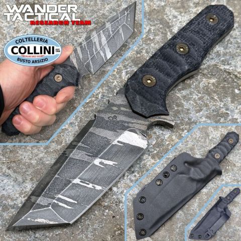 Il Wander Tactical - Lynx Tanto Knife - Ice Brush & Black Micarta è un coltello custom artigianale italiano progettato per soddisfare le esigenze di operatori, survivalist e appassionati di outdoor che richiedono uno strumento a lama fissa robusto, affidabile e versatile nelle situazioni più impegnative. Il profilo Tanto della lama, insieme alla geometria studiata per resistenza e precisione di taglio, lo rende ideale per impieghi tattici e attività di campo dove la solidità e il controllo sono essenziali, mentre la finitura Ice Brush conferisce una superficie artificiale spazzolata che riduce i riflessi e aumenta la resistenza alla corrosione visiva senza alterare le prestazioni d’acciaio. Destinazione d'uso: Tattico / Outdoor / Survival / Collezione artigianaleTipo di produzione: Artigianale / HandmadePaese di produzione: ItaliaLama: Acciaio D2 temprato, 59‑60 HRCFinitura lama: Ice Brush (spazzolata satinata, riduce riflessi)Manicatura: Black Micarta (fibra resinata)Lunghezza lam