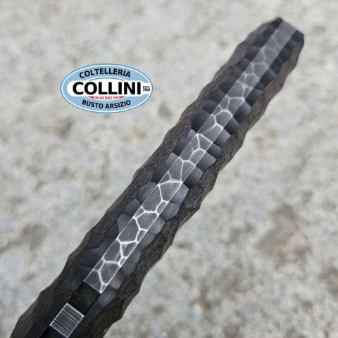 Pensato per offrire il massimo in termini di maneggevolezza e velocità d’azione, il nuovo Wander Tactical - Uro Primitive Custom Edition si distingue per la sua lama drop point da 5 mm di spessore, progettata per garantire un perfetto equilibrio tra leggerezza e robustezza. Questa configurazione lo rende particolarmente reattivo e rapido nell’utilizzo, ideale per chi cerca uno strumento affidabile ma dinamico nelle situazioni operative. Il punto cardine del coltello è la lavorazione “primitive” realizzata interamente a mano sul dorso dell’impugnatura, che si raccorda in modo impeccabile con la texture già presente sull’impugnatura stessa. Un dettaglio estetico e funzionale che esalta il carattere artigianale e distintivo del modello. Realizzato artigianalmente in Italia, questo coltello di alta qualità unisce funzionalità e cura dei dettagli in un design pensato per gli appassionati più esigenti. Tipo di produzione: Artigianale Paese di produzione: ItaliaLama: in acciaio D2 a 59