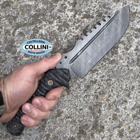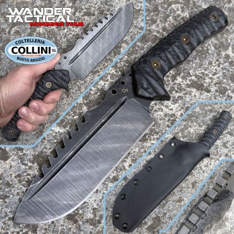 Il Wander Tactical - Uro Saw Custom Edition Knife è un coltello artigianale di alta qualità, interamente realizzato in Italia, pensato per gli appassionati di coltelleria e per chi cerca uno strumento versatile e affidabile in ogni situazione. La lama in acciaio D2, con una durezza tra 59 e 60 HRC, è dotata di una sega dorsale, ideale per tagli intensivi e operazioni di emergenza. La finitura Acid Raw conferisce alla lama un aspetto distintivo e una maggiore protezione contro la corrosione. Il manico in Micarta garantisce una presa sicura e confortevole anche in condizioni difficili. Con una lunghezza complessiva di 298 mm, una lama di 154 mm e un peso di 478 g, questo coltello offre robustezza e bilanciamento avanzato per una maneggevolezza ottimale. Il fodero in Kydex, compatibile con il sistema M.O.L.L.E., permette un trasporto facile e sicuro. Ogni coltello è realizzato a mano, con un'attenzione al dettaglio che lo rende un pezzo unico e viene fornito con un certificato di autentic