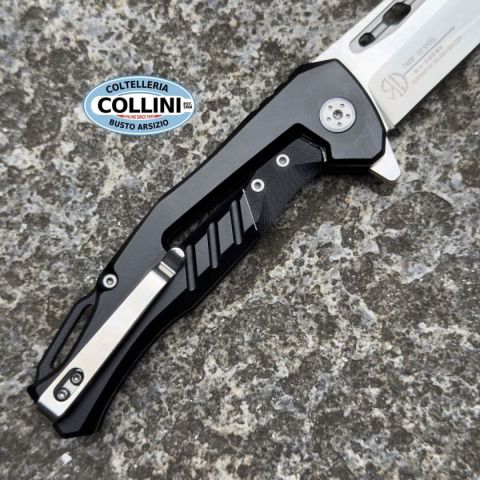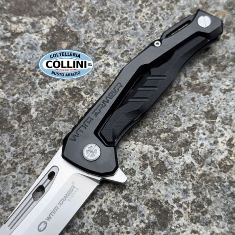 Coltello Pieghevole Thor-BK WA-085BK Il WithArmour WA-085BK "Thor-BK" è un coltello pieghevole di alta qualità pensato per chi cerca affidabilità, precisione e stile in un unico strumento. Con una lama in acciaio D2 trattato termicamente e un’impugnatura robusta in alluminio e G10, questo coltello è perfetto per l’uso quotidiano e le attività outdoor più impegnative. Il sistema di apertura fluido con cuscinetti a sfera ceramici garantisce un’azione rapida e precisa, mentre il design ergonomico assicura una presa sicura anche nelle condizioni più difficili. Destinazione d'uso: Sportivo / EDC Tipo di produzione: IndustrialePaese di produzione: CinaLama: in acciaio D2Finitura Lama: SatinaturaImpugnatura: Alluminio e G10Lunghezza lama: 97mm.Spessore lama: 3.2mm.Lunghezza totale: 227mm.Peso: 132.4g.Sistema di Blocco: Frame LockClip: in acciaio inox, amovibileFodero: -Confezione: Scatola di cartone con i loghi del produttore, certificati e garanziaNote: sistema di apertura tipo "Carso