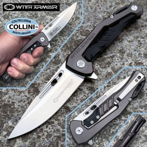 Coltello Pieghevole Thor-BK WA-085GY Il WithArmour WA-085GY "Thor-GY" è un coltello pieghevole di alta qualità pensato per chi cerca affidabilità, precisione e stile in un unico strumento. Con una lama in acciaio D2 trattato termicamente e un’impugnatura robusta in alluminio e G10, questo coltello è perfetto per l’uso quotidiano e le attività outdoor più impegnative. Il sistema di apertura fluido con cuscinetti a sfera ceramici garantisce un’azione rapida e precisa, mentre il design ergonomico assicura una presa sicura anche nelle condizioni più difficili. Destinazione d'uso: Sportivo / EDC Tipo di produzione: IndustrialePaese di produzione: CinaLama: in acciaio D2Finitura Lama: SatinaturaImpugnatura: Alluminio e G10Lunghezza lama: 97mm.Spessore lama: 3.2mm.Lunghezza totale: 227mm.Peso: 132.4g.Sistema di Blocco: Frame LockClip: in acciaio inox, amovibileFodero: -Confezione: Scatola di cartone con i loghi del produttore, certificati e garanziaNote: sistema di apertura tipo "Carso