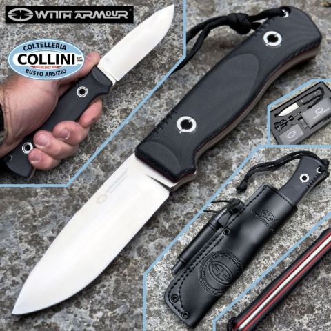 Coltello da Bushcraft WithArmour WA-2303-95BKG Woodlands-BKG Il coltello fisso Woodlands-BKG di WithArmour è progettato per affrontare le sfide più impegnative in ambienti outdoor. Con una lama robusta e un'impugnatura ergonomica, è lo strumento ideale per escursioni, campeggio ed attività di sopravvivenza. Destinazione d'uso: Bushcraft / Escursionismo / Utility Tipo di produzione: IndustrialePaese di produzione: CinaLama: in acciaio VG10 con affilatura convessa ed incavo superiore per acciarinoFinitura Lama: SatinaturaImpugnatura: Micarta con spaziatori in G10Lunghezza lama: 102mm.Spessore lama: 5.7mm.Lunghezza totale: 233mm.Peso: 285g.Fodero: in cuoio, da cintura, per porto verticale. Con scomparto dedicato per acciarino (incluso)Confezione: Scatola di cartone con i loghi del produttore, certificati e garanziaNote: -