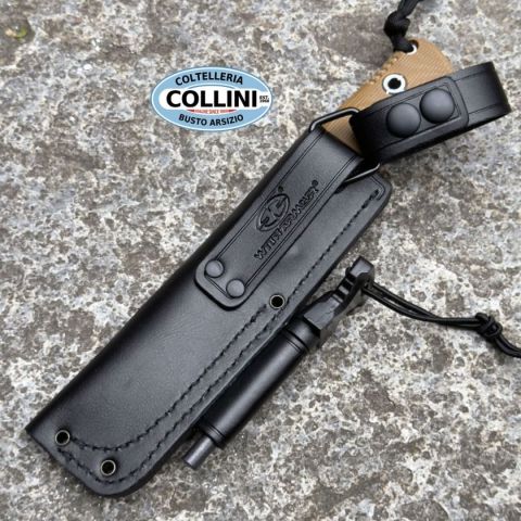 Coltello da Bushcraft WithArmour WA-2303-95TN Woodlands-TN Il coltello fisso Woodlands-TN di WithArmour è progettato per affrontare le sfide più impegnative in ambienti outdoor. Con una lama robusta e un'impugnatura ergonomica, è lo strumento ideale per escursioni, campeggio ed attività di sopravvivenza. Destinazione d'uso: Bushcraft / Escursionismo / Utility Tipo di produzione: IndustrialePaese di produzione: CinaLama: in acciaio VG10 con affilatura convessa ed incavo superiore per acciarinoFinitura Lama: SatinaturaImpugnatura: Micarta con spaziatori in G10Lunghezza lama: 102mm.Spessore lama: 5.7mm.Lunghezza totale: 233mm.Peso: 285g.Fodero: in cuoio, da cintura, per porto verticale. Con scomparto dedicato per acciarino (incluso)Confezione: Scatola di cartone con i loghi del produttore, certificati e garanziaNote: -