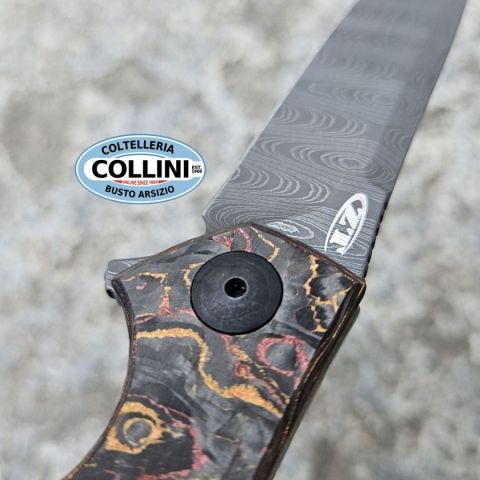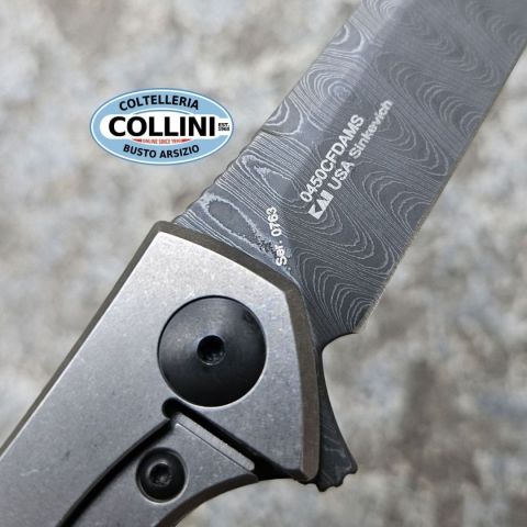 Zero Tolerance offre un'alternativa elegante e raffinata al modello originale 0450, con un tocco di stile in più. Questo sofisticato ZT è una versione compatta della famiglia ZT, ma non rinuncia a una combinazione robusta di materiali di alta qualità. La lama è realizzata in acciaio damasco inox di Vegas Forge, noto per la sua eccezionale resistenza, capacità di trattenere il filo e durabilità. La finitura acido-cerata della lama esalta i bellissimi motivi tipici dell'acciaio damasco che tutti apprezziamo. La guancetta anteriore del manico è in fibra di carbonio multistrato, che bilancia la solidità della costruzione con la leggerezza per un utilizzo comodo. Il retro del manico in titanio, trattato con finitura stonewashed, presenta un sicuro meccanismo frame lock, per una presa stabile e affidabile. L'0450CFDAMS sfrutta il sistema di apertura su cuscinetti a sfera KVT di ZT, che consente un'apertura fluida e semplice, adatta sia per utenti mancini che destri. Un clip reversibile per i