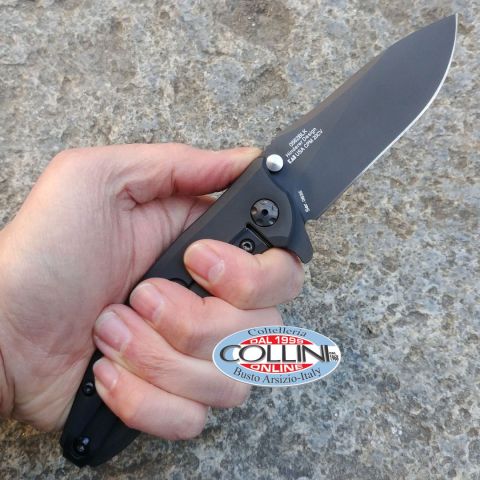 Destinazione d'uso: Tattico/MilitareTipo di produzione: IndustrialeProduzione Lama: USALama: In acciaio inox CPM-20CVTrattamento Lama: Black DLCManicatura: Titanio con trattamento Black DLC e G-10Lunghezza lama: 90mm.Spessore lama: 4mm.Lunghezza chiuso: 113mm.Lunghezza totale: 206mm.Spessore da chiuso: 12mm.Peso: 160g.Chiusura: Frame LockClip: Amovibile, Multiposizione, in acciaio inoxConfezione: scatola in cartone con loghi Zero ToleranceNote: Design by Rick Hinderer - Apertura su cuscinetti a sfera KVT Ball Bearing System - Apertura tramite sistema Carson Flipper