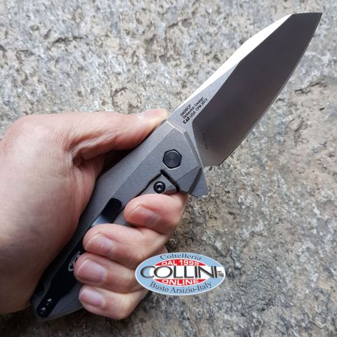 Destinazione d'uso: Sportivo/CollezioneTipo di produzione: IndustrialePaese di produzione: USALama: In acciaio inox CPM-20CVTrattamento lama: stone washed e satinaturaImpugnatura: Fibra di Carbonio e Titanio con spaziatori anodizzatiLunghezza lama: 87mm.Spessore lama: 4mm.Lunghezza chiuso: 112mm.Lunghezza totale: 193mm. Spessore da chiuso: 14mm. Peso: 139g.Chiusura: FramelockClip: Amovibile, reversibile, in acciaio inoxConfezione: scatola in cartone con loghi Zero ToleranceNote: Edizione Sprint Run disponibile fino ad esaurimento scorte - Design by Dmirty Sinkevich - Apertura KVT su cuscinetti a sfera
