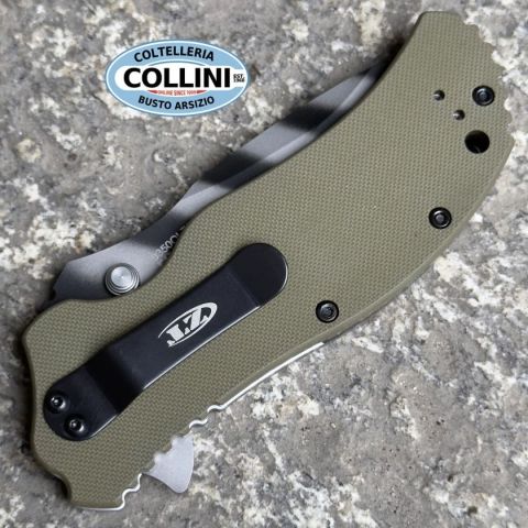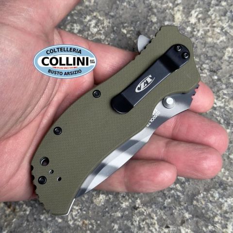 Uno dei nostri primi ZT e tuttora uno dei più popolari, ora proposto in tiratura limitata con lama acciaio CPM-MagnaCut. Lo 0350 è un coltello grande ed aggressivo, tuttavia abbastanza compatto e leggero da renderlo un EDC pratico e di grande effetto. Lo 0350 è dotato del sistema di apertura assistita di ZT: la lama si apre rapidamente e facilmente, anche con i guanti, grazie al flipper ambidestro. La lama è rifinita con un audace e caratteristico disegno a strisce tigrate realizzato con un DLC al tungsteno. Destinazione d'uso: Tattico / MilitareTipo di produzione: IndustrialePaese di produzione: USALama: In acciaio CPM-MagnaCutFinitura lama: Tungsten DLC CoatingManicatura: G-10Lunghezza lama: 90mm.Spessore lama: 3mm.Lunghezza chiuso: 115mm.Lunghezza totale: 195mm.Spessore da chiuso: 13mm.Peso: 162g.Chiusura: Liner LockClip: Amovibile, Multiposizione, in acciaio inoxConfezione: scatola in cartone con loghi Zero ToleranceNote: Edizione Sprint Run con acciaio CPM-MagnaCut - Design