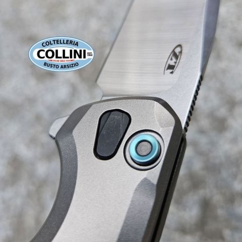 Il modello 0044 di Zero Tolerance è un coltello sportivo funzionale dal design pulito ed elegante, caratterizzato da un meccanismo di chiusura a pulsante fluido e resistente. La lama in acciaio CPM-S45VN offre una ritenzione del filo eccezionale ed un'ottima resistenza alla corrosione, con una doppia finitura satinata e stonewashed che mette in risalto le sinuose bisellature della lama. Il manico in titanio, leggero e ergonomico, è arricchito da dettagli come il collare del pulsante anodizzato in turchese e uno spacer in titanio, sempre anodizzato in turchese. Il sistema di apertura su cuscinetto a sfere ceramiche KVT permette un'apertura fluida, mentre la clip Cerakote nera è reversibile per il trasporto a sinistra o destra. Destinazione d'uso: Sportivo / CollezioneTipo di produzione: IndustrialePaese di produzione: USALama: In acciaio inox CPM-S45VNTrattamento lama: doppia finitura, satinatura e stonewashedManicatura: in titanioLunghezza lama: 81mm.Spessore lama: 3.1
