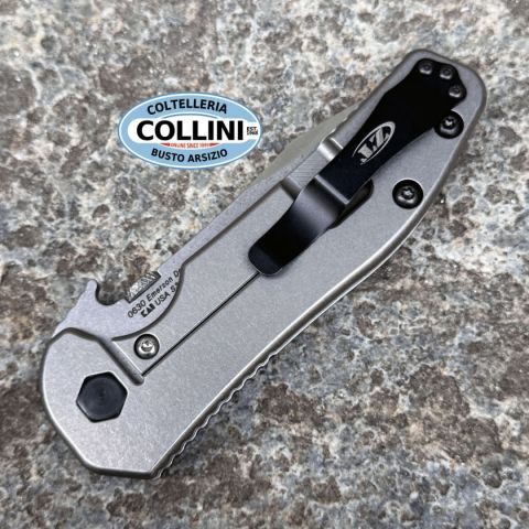 COLTELLO RITIRATO DA COLLEZIONE PRIVATA* Provenienza: Ritirato da un privato, precedentemente acquistato* Condizioni: Globalmente in ottime condizioni, piccoli segni su clip e viteria* Reperibile in commercio: Fuori produzione* Affilatura: Di fabbrica, migliorabile* Segni su lama: Nessuno* Segni su impugnatura: Piccoli segni su clip e viteria* Scatola: /* Fodero: /* Manuali, Certificati e Garanzie: /* Controllato e Certificato dal nostro laboratorio interno Destinazione d'uso: Tattico/SportivoTipo di produzione: IndustrialePaese di produzione: USALama: in acciaio inox S35VNFinitura lama: SatinaturaManicatura: G10 e Titanio stonewashedLunghezza lama: 91mm.Spessore lama: 3.6mm.Lunghezza chiuso: 124mm.Lunghezza totale: 216mm.Spessore da chiuso: 13mm.Peso: 178g.Chiusura: Frame LockClip: Amovibile e multiposizione, in acciaio inoxConfezione: non presenteNote: coltello precedentemente acquistato, proveniente da una collezione privata - realizzato in collaborazione con Emerson Knives - S