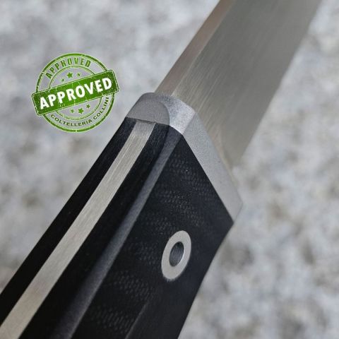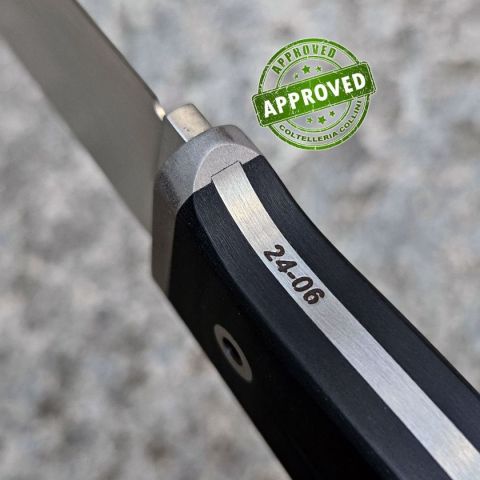 COLTELLO RITIRATO DA COLLEZIONE PRIVATA* Provenienza: Ritirato da un privato, precedentemente acquistato* Condizioni: Nuovo, mai utilizzato e mai estratto dal proprio fodero* Reperibile in commercio: Su ordinazione, con un periodo di attesa di diversi anni per poterlo ricevere* Affilatura: Di fabbrica* Segni su lama: Nessuno* Segni su impugnatura: Nessuno* Scatola: originariamente venduto privo di confezione* Fodero: Presente* Manuali, Certificati e Garanzie: Tag in cuoio con impressa la data di produzione* Controllato e Certificato dal nostro laboratorio interno Destinazione d'uso: Bushcraft / All Rounder Utility Tipo di produzione: ArtigianalePaese di produzione: Regno UnitoLama: full tang in acciaio inox RWL34Finitura: SatinaturaImpugnatura: in G10 con pin tubes e guardia passante in acciaio inox 300 Lunghezza lama: 105mm.Spessore lama: 4mm.Lunghezza totale: 220mm.Bilanciatura: arretrataPeso: 219g.Fodero: in cuoio nero, con passanti per porto orizzontaleConfezione: coltell