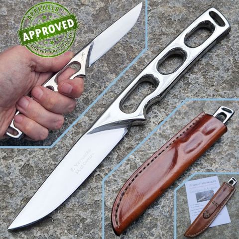 COLTELLO RITIRATO DA COLLEZIONE PRIVATA* Tipologia: Precedentemente Acquistato* Condizioni: Utilizzato per caccia e riaffilato, con qualche piccolo segno dato da una precedente affilatura* Reperibile in commercio esemplare unico del 2010* Affilatura: Riaffilato, migliorabile* Segni su lama: Piccoli segni di una precedente riaffilatura* Segni su impugnatura: Piccoli segni di una precedente riaffilatura* Confezione: /* Fodero: In cuoio, prodotto artigianalmente, in buone condizioni, con qualche piccolo segno di usura* Manuali, Certificati e Garanzie: Certificato di autenticità* Controllato e Certificato dal nostro laboratorio interno FRANCO VERNAZZA è un coltellinaio hobbista e per passione iscritto all' A.C.H.I. (associazione Coltellinai Hobbisti Italiani), ciò non gli toglie ottime doti di coltellinaio. Lui stesso si dice realizzatore di lame per passione, di coltelli che facciano il mestiere di tagliare, tutto il resto è un particolare. Le lavorazioni, tutte uniche perchè non utilizza