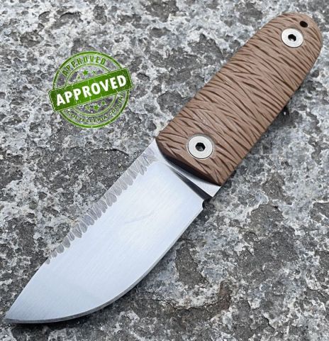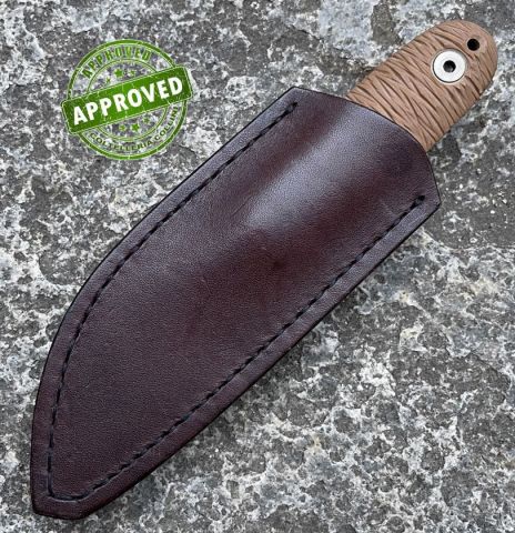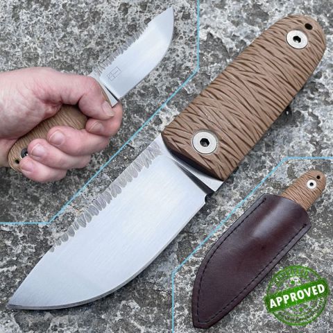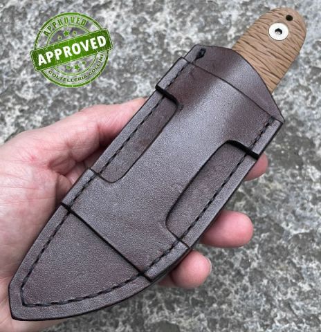 COLTELLO RITIRATO DA COLLEZIONE PRIVATA* Tipologia: Precedentemente Acquistato* Condizioni: In ottime condizioni* Reperibile in commercio: esemplare unico* Affilatura: Originale* Segni su lama: /* Segni su impugnatura: /* Confezione: /* Fodero: due artigianali, in cuoio e kydex* Manuali, Certificati e Garanzie: Si* Controllato e Certificato dal nostro laboratorio interno Neanderth.Art è il progetto del coltellinaio Dario Trifelli sempre alla ricerca di design originali e funzionali. Destinazione d'uso: caccia / collezioneTipo di produzione: artigianalePaese di produzione: ItaliaLama: in acciaio Becut Finitura lama: satinaturaManicatura: G10Lunghezza lama: 80mm.Spessore lama: 5.5mm.Lunghezza totale: 180mm.Peso: 219g - 316g compreso fodero in cuoio - 280g compreso fodero in kydexFodero: due artigianali, in cuoio e kydexConfezione: /Note: coltello precedentemente acquistato, proveniente da una collezione privata