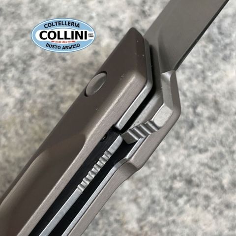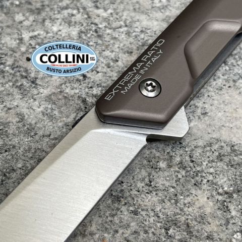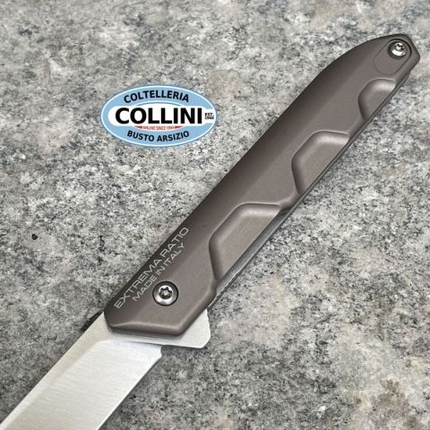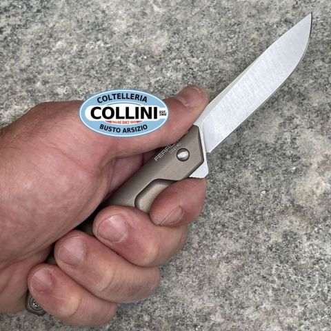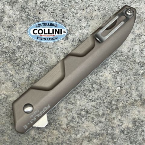 Ferrum E è un coltello chiudibile EDC (Every Day Carry), semplice, essenziale e funzionale. Dotato di lama drop, ha una forma sottile e compatta, le due guancette in alluminio anticorodal anodizzato compongono un’impugnatura leggera, slanciata ed allo stesso tempo molto resistente. Può essere alloggiato in un taschino, in piccole fondine per torce o all’interno di un singolo passante del sistema M.O.L.L.E.Dotato di sistema di apertura assistita flipper, la lama ruota su cuscinetti a sfere che permettono un movimento della lama fluido e privo d’incertezze. Questo meccanismo permette all’operatore un’apertura rapida ed agevole della lama, anche con una sola mano. Il sistema di blocco adottato è l’ormai collaudato liner lock.La clip reversibile è posizionata posteriormente. Destinazione d'uso: Tattico / EDCTipo di produzione: IndustrialePaese di produzione: ItaliaLama: in acciaio inox N690Co 58HRCFinitura lama: SatinataManicatura: Anticorodal RuvidoLunghezza lama: 75mm.Spessore lama